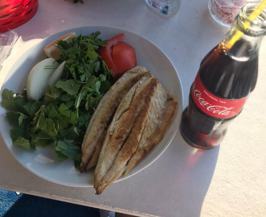 Gerçekten müthiş bir restorant. Normalde hiç balık yemem, ailem de şikayetçidir bu konudan. Buraya oturduk ve bir porsiyon uskumru aldım. Tabağın tamamını bitirdim. Şaşırtıcıydı, gayet lezzetliydi ama. Izgarada yapıldığı için sağlıklı, yanında otuyla limonuyla geliyor. Masada ıslak mendil de var.