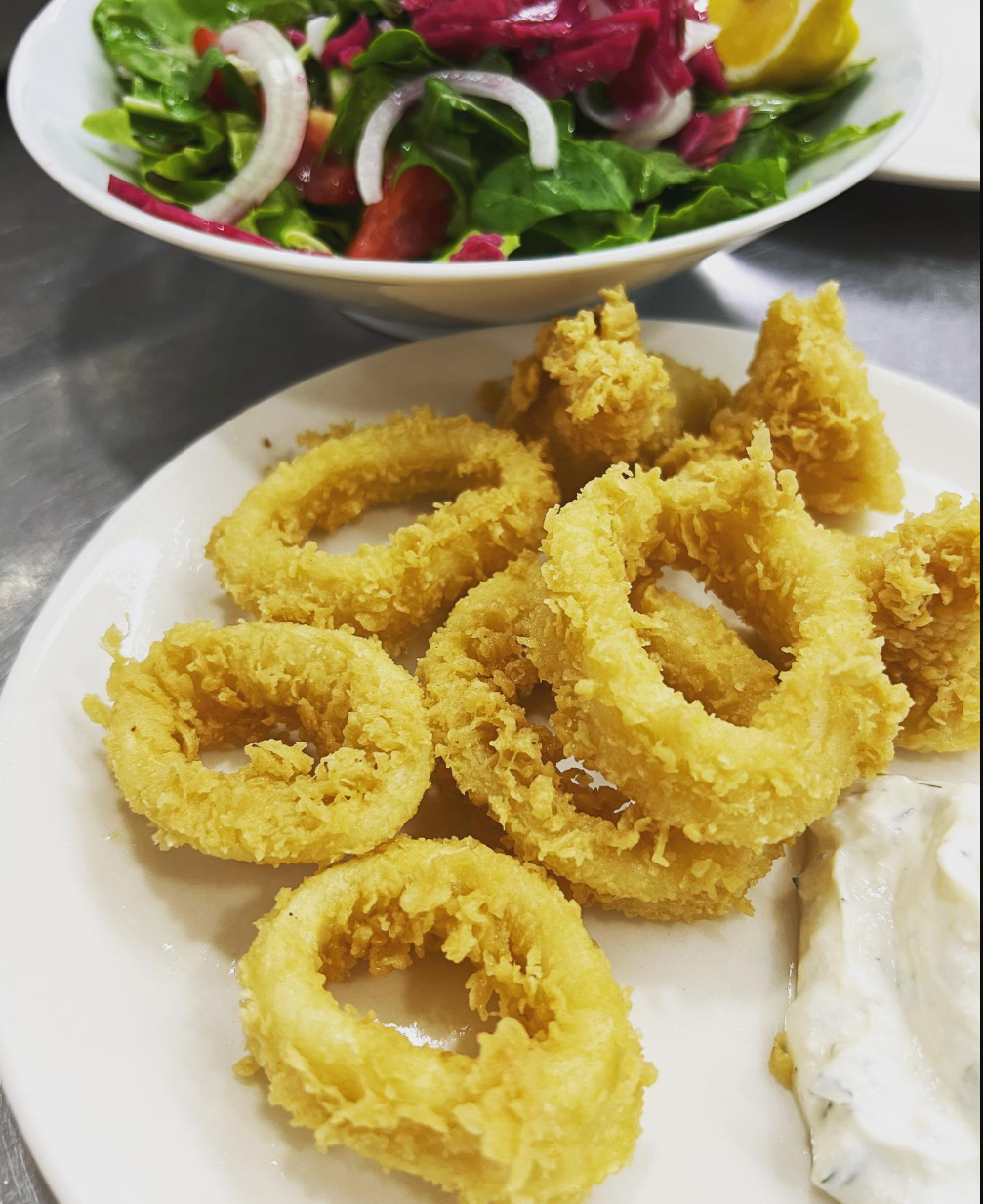 Tazeliğiyle özenle seçilen kalamar halkaları, hafifçe unlanarak kızgın yağda altın sarısı renge ulaşana kadar pişirilir. Dışı çıtır, içi yumuşacık dokusuyla deniz mahsullerinin en sevilen atıştırmalıklarından biridir. Yanında özel sosu ve limonla birleştiğinde damakta iz bırakan eşsiz bir lezzet sunar.